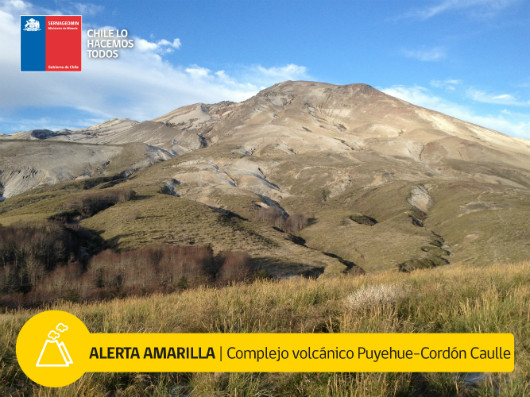 Debido a la reciente actividad del Complejo Volcánico Puyehue-Cordón Caulle, el Servicio Nacional de Geología y Minería (SERNAGEOMIN), institución a cargo de la Red Nacional de Vigilancia Volcánica (RNVV) ha resuelto declarar alerta técnica amarilla para el macizo, ubicado en la Región de Los Ríos.