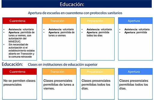 Para las decisiones de avances y retrocesos, se redefinirán las unidades territoriales. Se tendrá en cuenta las divisiones provinciales y amplias agrupaciones de comunas, de acuerdo a las características regionales y su movilidad. Para estos movimientos se analizan especialmente los siguientes parámetros: