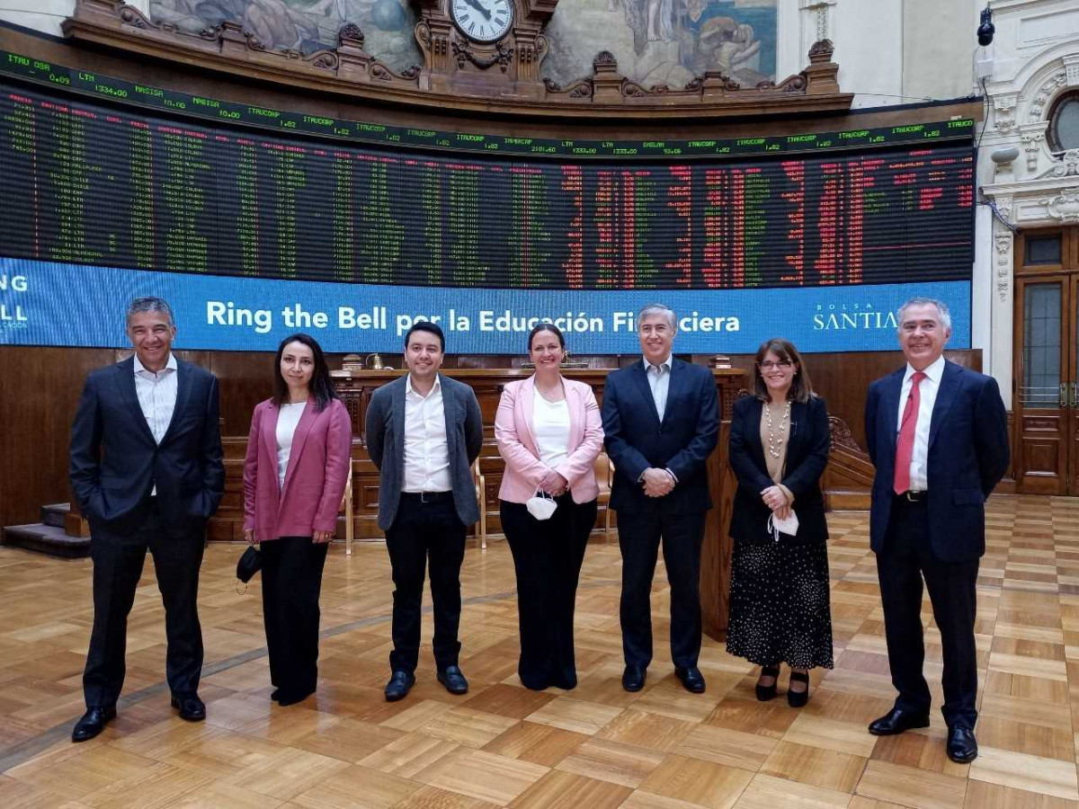 La Bolsa de Santiago celebró el Ring The Bell por la Educación Financiera desde el Salón de Ruedas de la mayor plaza bursátil del país, con el objetivo de promover el desarrollo de un trabajo colaborativo para reducir las actuales brechas en inclusión y Educación Financiera. La actividad forma parte de la Semana Mundial del Inversionista, que promueve la World Federation of Exchanges (WFE), bajo la premisa de que este es un tema fundamental para el trabajo de las bolsas de valores del mundo y su compromiso con el crecimiento económico.