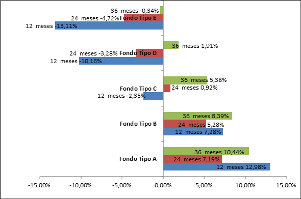 Por su parte, los fondos B y C en diciembre de 2021 anotaron una ganancia real de 1,13% y 0,67%, respectivamente, mientras que los fondos D y E rentaron 0,69% y 0,79%, respectivamente.