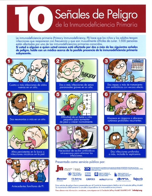 Padres y médicos deben estar alertas a estas 10 señales para sospechar una posible IDP, las cuales fueron desarrolladas por la Fundación Jeffrey Modell3: