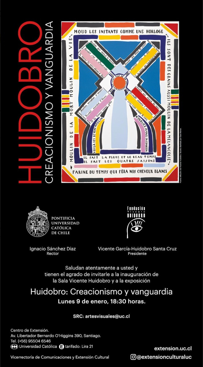 El Centro de Extensión Universidad Católica inaugurará este 9 de enero su nueva sala conmemorativa al famoso poeta chileno Vicente Huidobro, luego del convenio firmado por la universidad con la Fundación que lleva su nombre para la muestra y conservación de material inédito e histórico creado por Huidobro.