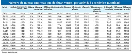 Una caída anual de 14,7% experimentó el número de empresas nuevas en Chile en diciembre pasado al totalizar 11.348 compañías frente a las 13.306 constatadas en 2021, informó esta mañana el Banco Central. Respecto de noviembre de 2022, las nuevas sociedades anotaron un ascenso de 6,3% durante el último mes del ejercicio.