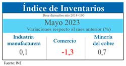 Por el contrario, el Índice de Inventarios de la Minería del Cobre (IIMCu) creció 0,7% en comparación con abril. En la variación incidió tanto el alza de insumos industriales, que aportó 0,549 puntos porcentuales, como de productos de la minería del cobre, que contribuyó con 0,131 puntos porcentuales.