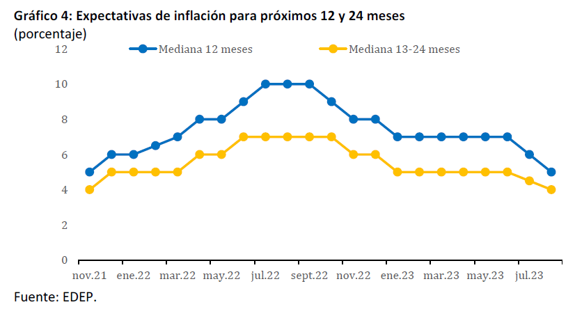 El Banco Central publicó la Encuesta de Determinantes y Expectativas de Precios (EDEP), sondeo que indaga en las dinámicas de fijación de precios de las empresas y sus expectativas económicas, incluyendo sus estimaciones de inflación a 12 y 24 meses. La presente publicación corresponde a información levantada durante los meses de junio, julio y agosto de 2023.