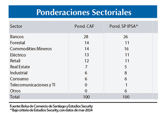 Mantenemos la exposición en el sector forestal. Los precios de celulosa se han mantenido fuertes, con alzas en los precios de Europa y China, por lo que mantenemos la exposición en el sector ante las perspectivas positivas. Los inventarios de celulosa han mostrado una leve alza en marzo en el mercado europeo, con un mercado que inicia el 2024 con una demanda más sana al igual que una oferta con menos problemas de huelgas y cierres. La última conferencia anual de productores y compradores de celulosa en China mostró un renovado interés por adquirir volúmenes del producto. CMPC también ha demostrado mejorar la operación de su negocio de Softys, que ha logrado elevar volumen de venta y márgenes, subsanando ciertas caídas en ingresos en el segmento de celulosa y Biopackaging. En el caso de COPEC, MAPA ha logrado operar de manera eficiente y ha mejorado los volúmenes de venta de la compañía. El sector muestra mayor estabilidad y buenas perspectivas, por lo que nos mantenemos sobreponderados.