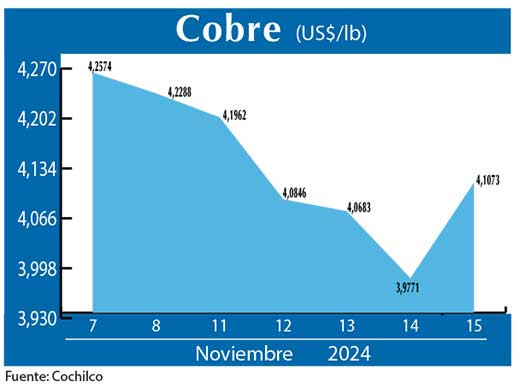 Un fuerte incremento de 3,3% experimentó este viernes el precio del cobre al cerrar en US$ 4,107 la libra en la Bolsa de Metales de Londres (BML). La materia prima promedia US$ 4,143 la libra en lo que va del año con un avance de 8,1%.