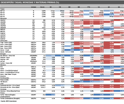 Resultados Corporativos 3T24 - SQM: Positiva mejora en costos en el segmento Litio. La compañía reportó un EBITDA ajustado de US$ 338,6 millones (-57% a/a), en línea con nuestras expectativas (US$ 342 millones) pero por encima del consenso del mercado local (US$ 299,3 millones). El segmento Litio reportó una fuerte caída en margen bruto (-83% a/a hasta US$ 91,5 millones), impactado principalmente por la caída observada en los precios promedio realizados. Sin embargo, la principal sorpresa positiva se vio en costos unitarios de Litio, que cayeron -61% a/a hasta US$ 6.191/ton. Por otro lado, también destacó el segmento de Yodo, que continúa mostrando positivas tendencias de precios y crecimiento en volúmenes de un dígito alto. Por último, también destacamos el crecimiento de doble dígito en ventas del segmento Nutrición Vegetal de Especialidad (NVE), impulsado por un aumento de +21,8% a/a en los volúmenes de ventas. En un contexto desafiante en cuanto a precios del Litio, creemos que la compañía ha mostrado una sólida ejecución en su estrategia de crecimiento en capacidad y está bien posicionada para beneficiarse de una potencial recuperación de precios en 2025. Según nuestras estimaciones, SQM transaría ~4.5x EV/EBITDA Fwd , representando un descuento del 7% respecto a su promedio de 5 años. Mantenemos nuestro precio objetivo y recomendación de mantener.