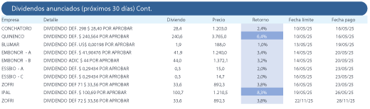 Líder en colocaciones bancarias en Chile, con sólidas tendencias operacionales en 2025 y potencial expansión de múltiplos en escenarios de mejora en perspectivas económicas locales. Además, provee un atractivo retorno por dividendos en el corto plazo.