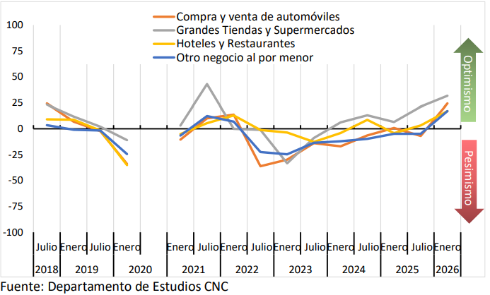 En síntesis, el comercio comienza 2026 con un ánimo renovado y expectativas significativamente más favorables. La clave hacia adelante será transformar este optimismo en inversión efectiva, mayor empleo y crecimiento sostenido, asegurando que la recuperación del sector no sea solo un cambio en percepciones, sino un proceso real y duradero.
