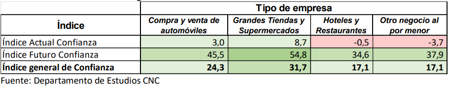 El Índice General de Confianza del Comercio Minorista, Hoteles y Restaurantes inicia el primer semestre del año en terreno “levemente optimista”, alcanzando 17,8 pts. en una escala que va de -100 a 100 (donde 0 corresponde a un nivel neutro). Con este resultado, el indicador rompe una racha de siete períodos consecutivos en terreno pesimista, evidenciando un cambio relevante en el ánimo empresarial de los rubros analizados.
