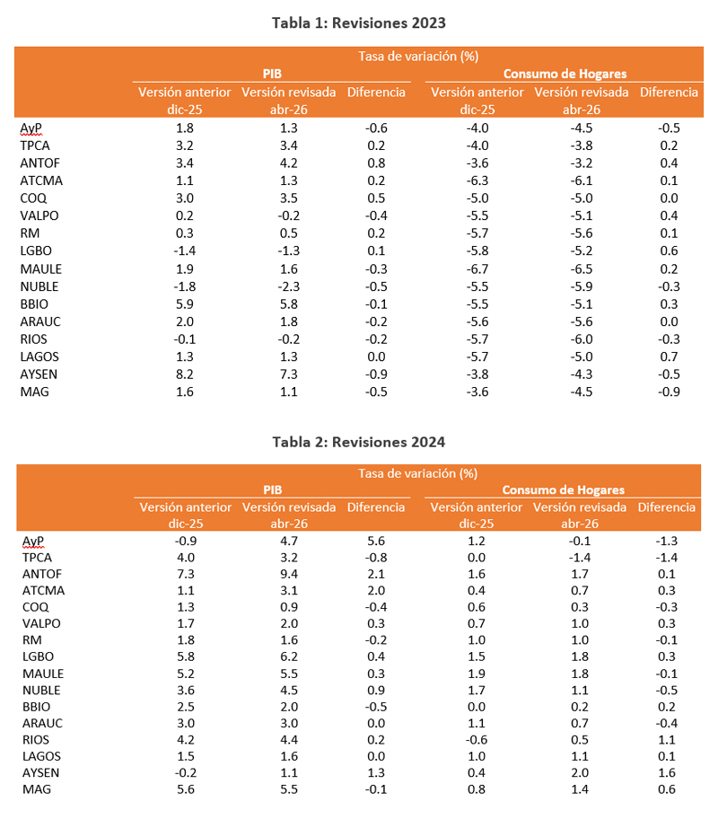 De acuerdo con la política de revisiones establecida para el Producto Interno Bruto Regional, se presentan nuevas estimaciones para el PIB y el consumo de hogares, que incorporan los nuevos agregados nacionales 2023 - 2025 provenientes de las Cuentas Nacionales Anuales (CNA) y las nuevas cifras trimestrales publicadas el pasado 18 de marzo. Adicionalmente, se actualizaron los indicadores y registros administrativos utilizados para distribuir por región los agregados nacionales, consistente con el método descendente de estimación.